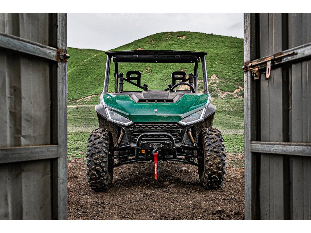 Elektrický naviják 4500 lbs, inteligentní elektrický posilovač řízení, TFT digitální přístrojová deska, tažné zařízení, nastavitelný volant, anatomicky tvarovaná sedadla s hlavovou opěrkou, tříbodové pásy, přední ochranný rám, bezpečnostní sítě na straně řidiče i spolujezdce, pevná střecha, velká sklopná korba, 14" ocelové disky. |