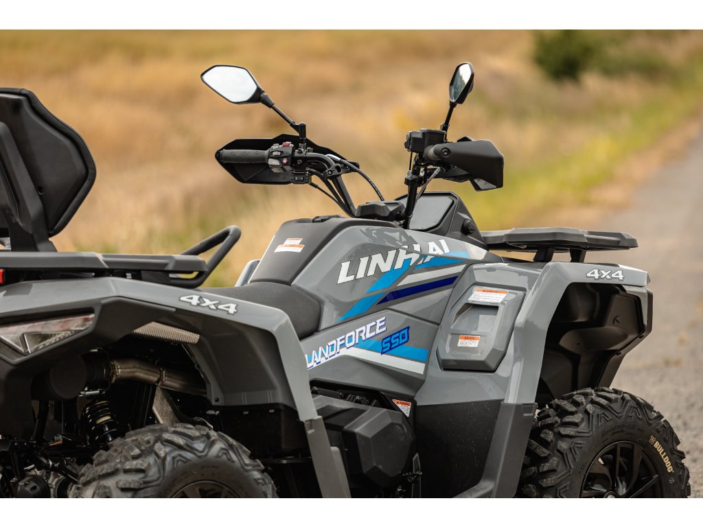 Linhai Landforce 550L nabízí mimořádně bohatou výbavu, ve které nechybí atraktivní 12" litá kola se značkovými 25“ pneumatikami Bulldog, elektrický naviják 3000 lbs, homologované tažné zařízení, plnobarevný 7“ TFT displej nebo elektrický posilovač řízení EPS. Vše, co si chcete vzít s sebou, pojmou kompozitní nosiče a praktické úložné schránky. Ve výbavě najdete i chrániče rukou, 12 V zásuvku, USB port nebo pohodlné vyvýšené sedadlo spolujezdce.