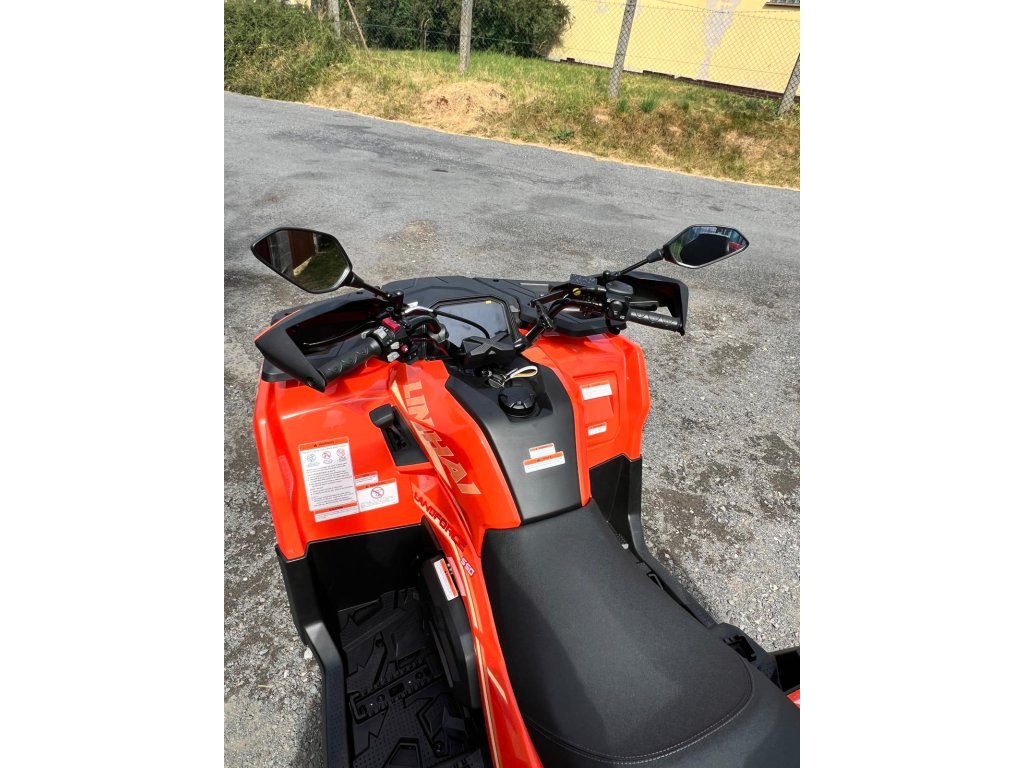 výbava: | Elektrický naviják 3000lbs s nylonovým lanem, elektrický posilovač řízení EPS, homologované tažné zařízení, 12" designová ALU kola, značkové 25" pneumatiky Bulldog, kompozitní nosiče vpředu a vzadu, kryty páček a rukou, Full-LED osvětlení, plnobarevný 7“ TFT displej, 12 V zásuvka, USB port, samostatné vyvýšené sedadlo spolujezdce s opěrkou zad, madla s neklouzavým povrchem |