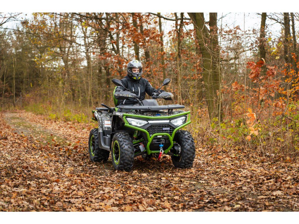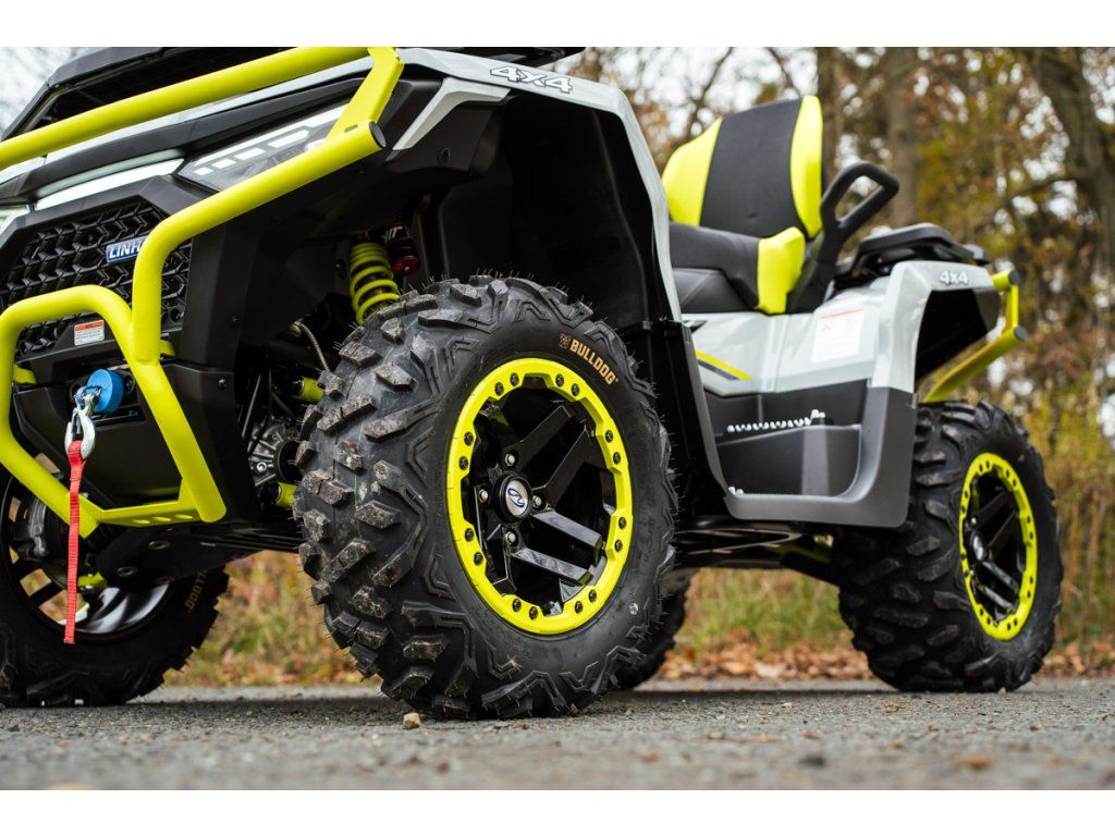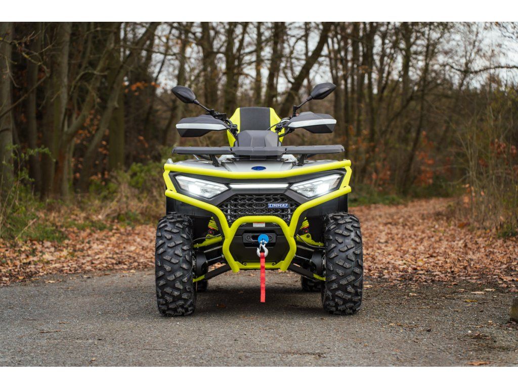 Linhai Landforce 650L Pro přináší mimořádně bohatou výbavu, která zahrnuje plně nastavitelné tlumiče s oddělenou nádobkou piggyback, masivní přední a zadní ocelový nárazník, atraktivní 14" osmipaprsková litá kola se systémem Beadlock a značkovými 26" pneumatikami Bulldog, hliníkové protiskluzové stupačky řidiče a spolujezdce, dvoubarevně prošívanou sedačku a opěrku zad spolujezdce, nebo barevně lakovaná A-ramena. Ve výbavě samozřejmě nechybí elektrický posilovač řízení, homologované tažné zařízení, 3000 lbs naviják, velký 7“ TFT displej, kompozitní nosiče vpředu i vzadu ani velkoplošné kryty rukou.