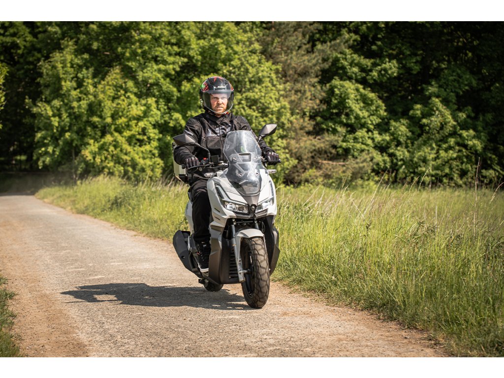 Díky hbitosti a snadné ovladatelnosti je perfektní do města i mimo něj. Díky vysokým zdvihům, velkým kolům a skvělému odpružení mu nevadí propadlé kanály ani rozbité cesty. Jízdním pohodlím předčí běžné skútry. Chytře navržený skútr vás okouzlí dokonalým designem, výkonným motorem a příjemným podvozkem, který jen tak něco nerozhodí.